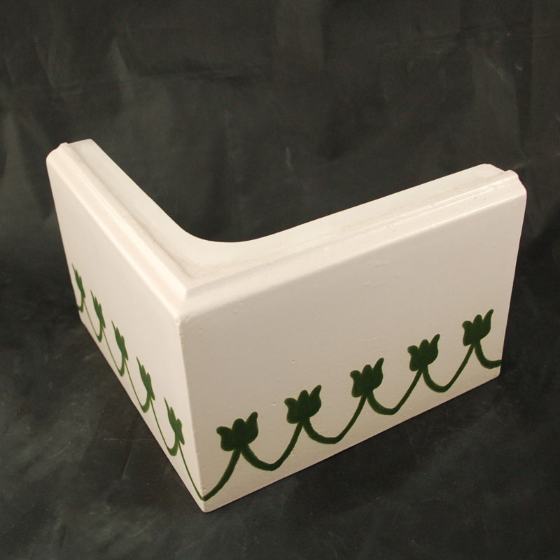 Colt soclu de teracota pictat manual, pentru a fi folosit la constructia sobelor de teracota pictate. Culoarea de accent se alege in functie de culoarea cu care se picteaza placile si restul sobei.