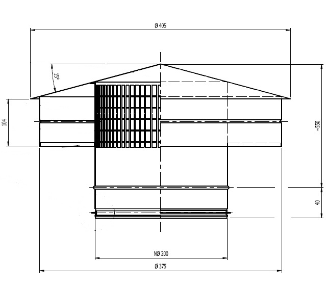 Turn de admisie de aer exterior, cu protecție împotriva ploii, prevăzută cu plasă de protecție împotriva insectelor și păsărilor, rozătoarelor