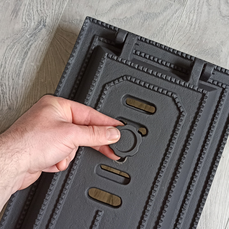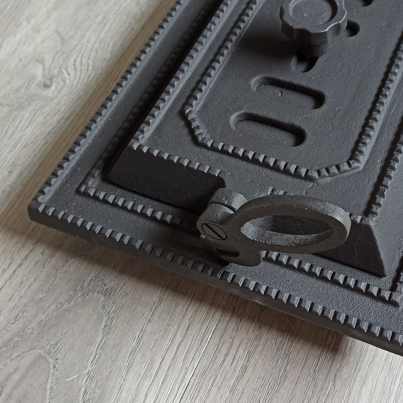 Usa de cenusar pentru soba de teracota din fonta, model clasic, prevazuta cu snur la inchidere, din fibra ceramica, care faciliteaza inchidere etansa, dar in acelasi timp nu dauneaza sanatatii.