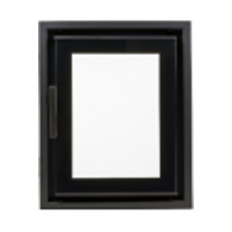 Usa de soba vitrata, prevazuta cu sticla dubla. In partea interioara aceste usi sunt realizate din fonta, exteriorul si rama de montaj reglabila in adancime sunt din otel. Este prevazut cu doua straturi de sticla termorezistenta fabricate in Germania, cea exterioara fiind tratata cu o vopsea termorezistenta speciala care ii confera eleganta. Toate partile metalice sunt tratate cu o vopsea termorezistenta neagra care confera un aspect atractiv pe termen lung acestei usi.