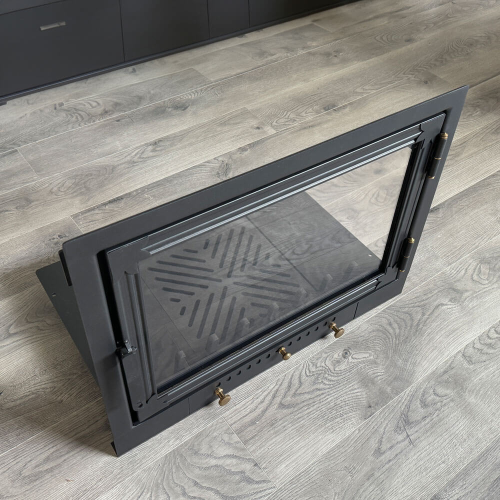 Usa de semineu Pilis ca si latime corespunde unei usi de semineu, are un design contemporan, este prevazut cu butoane din cupru, maner din otel. Usile de semineu sau de soba de teracota au o suprafata mare vitrata (de sticla) pentru savurarea momentelor memorabile si calduroase atat pentru suflet cat si pentru ochi. Aceasta usa dispune de o suprafata vitrata mare, cu vizibilitate de 505 x 320 mm