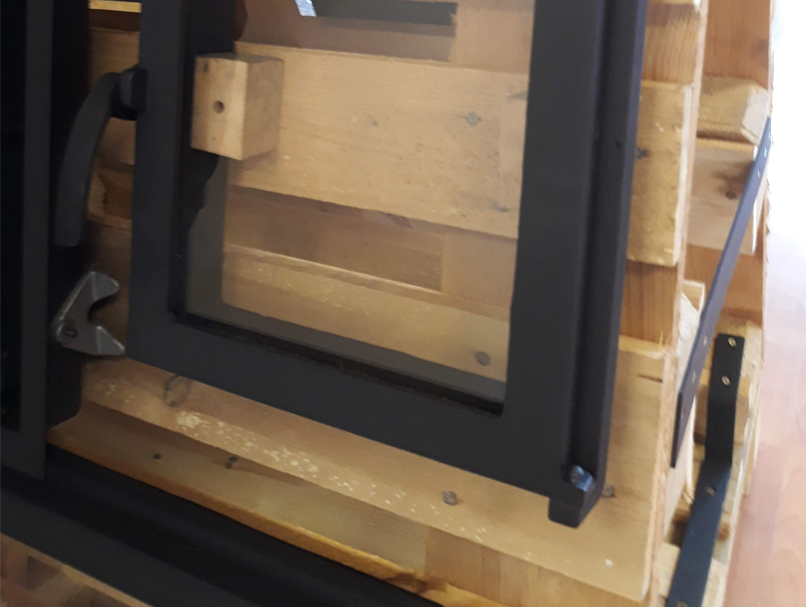 Se livreaza cu 4 bucati de cleme de montaj din fonta si un parascantei din fonta care protejeaza sticla de buturugile de lemn care ar putea sa o sparga.