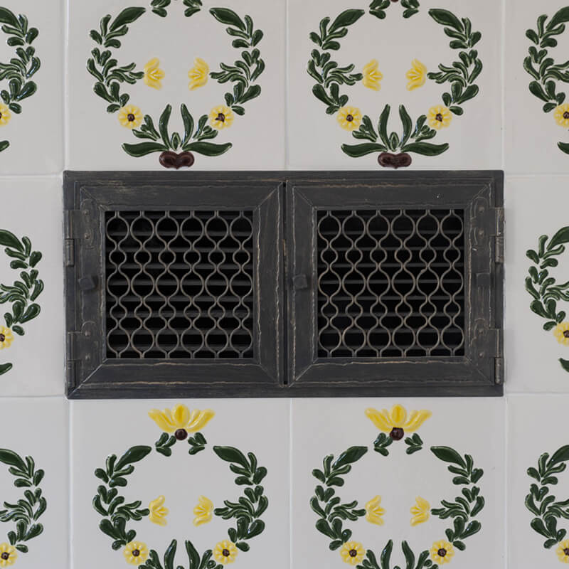 Peretele din spatele semineului a fost izolat cu placi din silicat de calciu, astfel caldura produsa se valorifica in spatiul interior, nu va fi absorbit de catre peretii casei. Semineul s-a realizat in stilul sobelor construite in perioada interbelica.