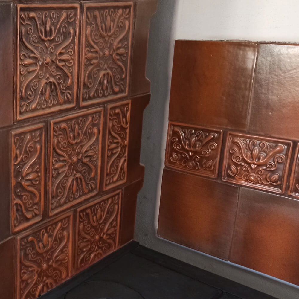 O soba cu plita din fonta de dimensiune mai mare, avand o forma clasica, datorita culorii si modelului placii avand un stil rustic. Este realizata din placile de teracota T008 decorate cu model floral. Aceasta soba de teracota este capabila de a incalzi o incapere de dimensiune mai mare, de aproximativ 30-45 mp (depinde si de gradul de izolare al casei, se recomanda realizare sau consultare certificat energetic), dar dimensiunea sobei se poate adapta, recalcula pentru a corespunde spatiului pe care doriti sa o incalziti.
