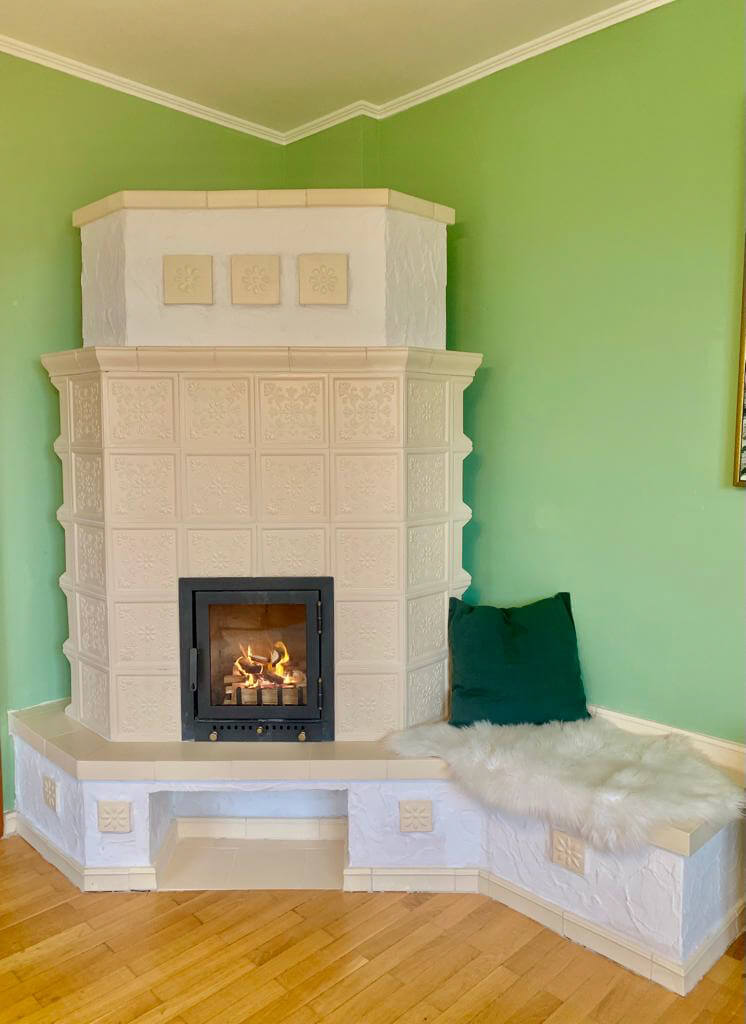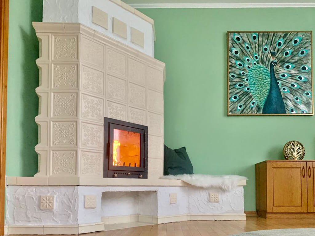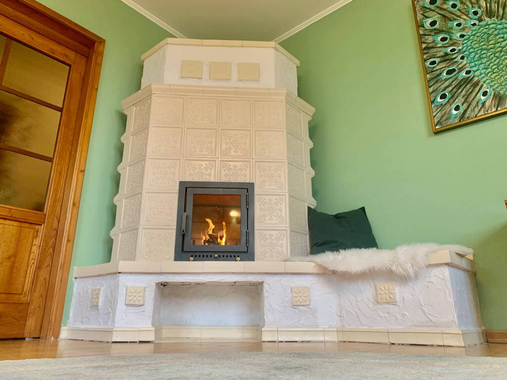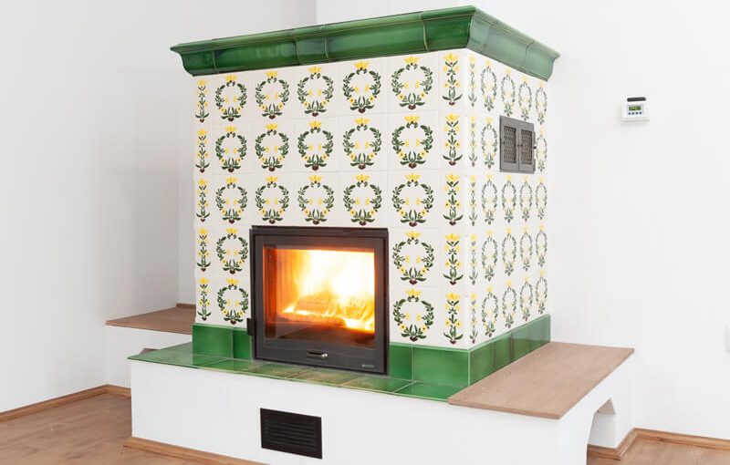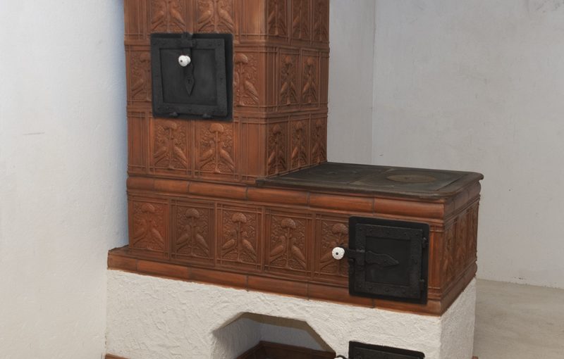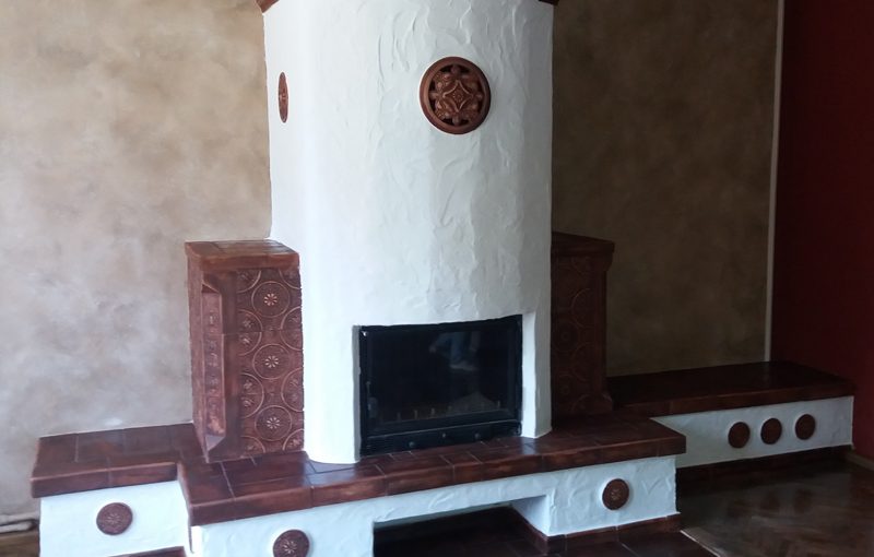Soba este construita in coltul camerei, dar distantat de perete, ca si spatekle sobei sa contribuie la incalzirea camerei.