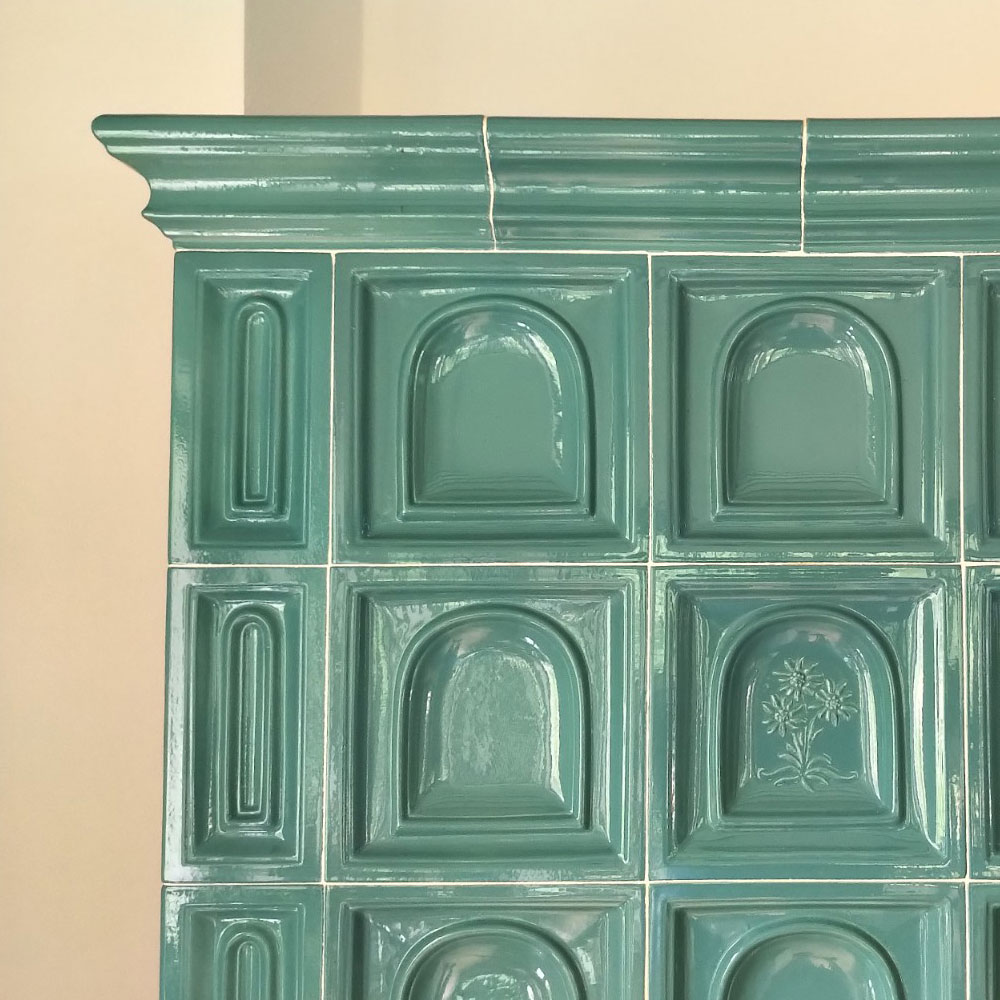 Soba de teracota Z017 este o soba cu forma clasica, dreptunghiulara si este glazurata cu culoarea verde turcoaz (teracota turcoaz). Este realizata din placile Bizantin, iar pe frontul sobei, amplasat central avem si o piesa Bizantin, dar decorata cu floare de colt. Aceasta soba de teracota turcoaz este capabila de a incalzi o incapere mai mare, de aproximativ 30-40 mp, dar dimensiunea sobei se poate adapta, recalcula pentru a corespunde spatiului pe care doriti sa o incalziti.