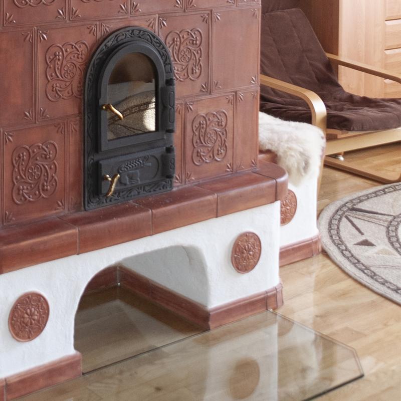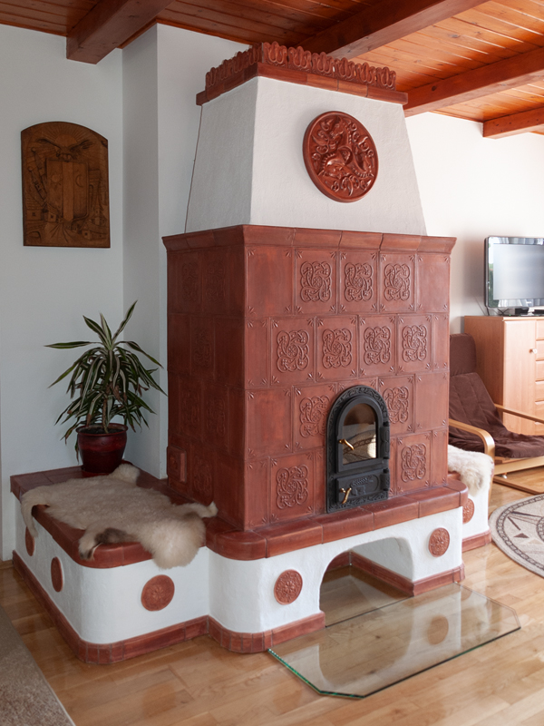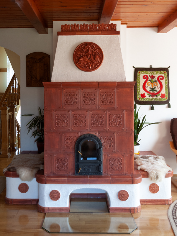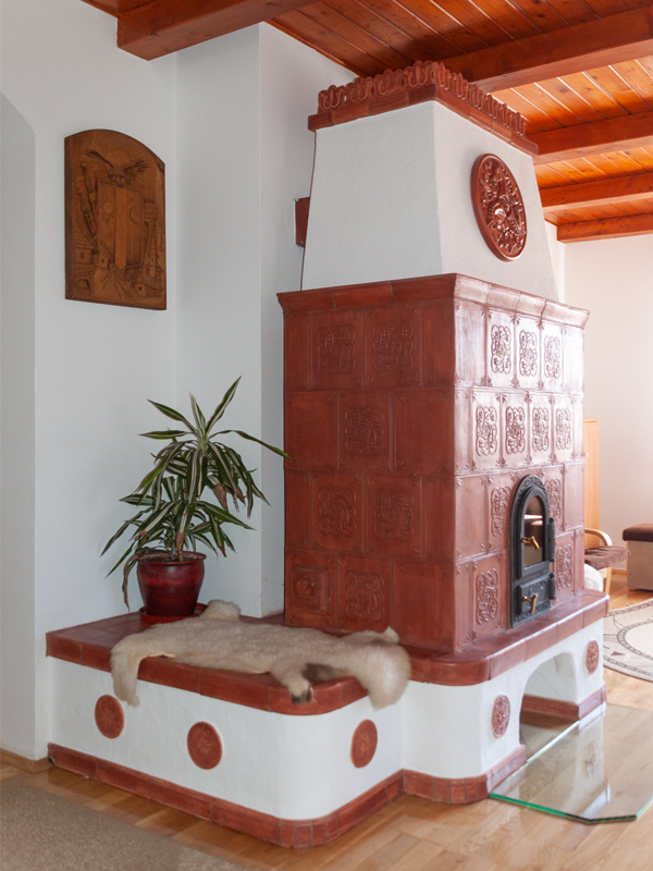 Soba de teracota Z020 are o forma eleganta care creaza un contrast placut intre placile de teracota maro si suprafetele tencuite albe, astfel se potriveste excelent intr-un interior clasic sau rustic. Soba este realizata din placile de teracota T045, postamentul fiind realizat din zidarie si tencuit ulterior.Deasupra cornisei de mijloc suprafata tencuita s-a construit din placi de teracota tencuibile, iar dupa ce a fost tencuit s-a aplicat pe ea decorul ceramic.