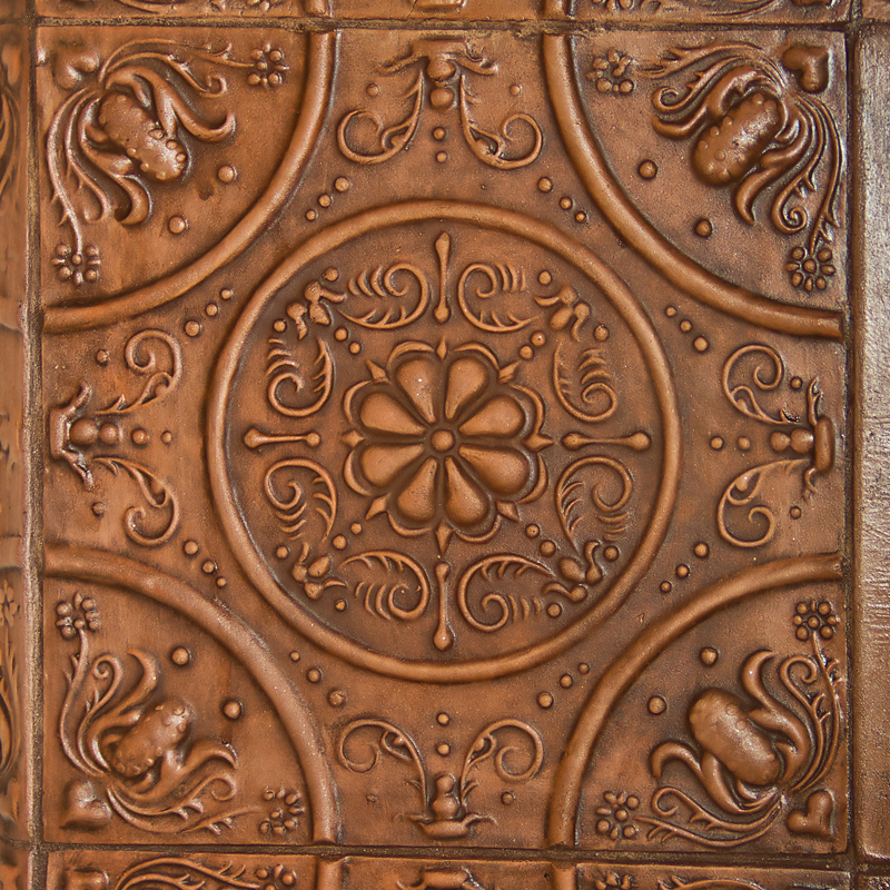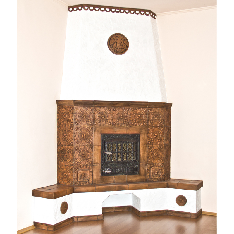 Soba de teracota Z051 are o forma eleganta care creaza un contrast placut intre placile de teracota maro si suprafetele tencuite albe, astfel se potriveste excelent intr-un interior clasic sau rustic. Soba este realizata din placile de teracota T023, postamentul fiind realizat din zidarie si tencuit ulterior.Deasupra cornisei de mijloc suprafata tencuita s-a construit din placi de teracota tencuibile, iar dupa ce a fost tencuit s-a aplicat pe ea decorul ceramic. Soba este construita in coltul camerei, lipit de peretii din spate. Recomandam construirea sobei distantat de perete, pentru ca in acest caz mai primim o suprafata de degajare a caldurii (spatele sobei) si nu apar probleme cauzate de dilatarea sobei de teracota ca de exemplu crapaturi intre soba si perete sau chiar o distantare vizibila.